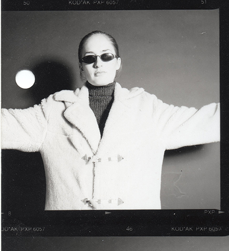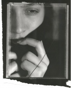 “This was by Mark Lidinsky(Sp? I know his last name was polish and started with an L). We were in a large format class at CCA (CCAC! – Oakland and San Francisco, CA). He called me over to model as Georgia O’Keefe in Alfred Stieglitz’ classic portraits of Georgia. This was the only one I had handy. There are others, and they are beautiful. This one was one where he tore the negative. Type55. Circa 1996.”